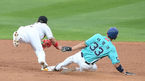 [OSEN=수원 , 곽영래 기자] 23일 오후 수원 KT위즈파크에서 '2020 신한은행 SOL KBO리그' KT 위즈와 NC 다이노스의 경기가 열렸다.1회초 무사 1루 NC 이명기가 나성범의 유격수 땅볼때 2루에서 아웃당하고 있다. /youngrae@osen.co.kr