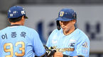 [OSEN=창원, 민경훈 기자] 1일 오후 창원 NC파크에서 ‘2020 신한은행 SOL KBO리그’ NC 다이노스와 롯데 자이언츠의 경기가 열렸다.4회말 무사 주자 2루 NC 나성범이 좌중간 1타점 적시 2루타를 날린 후 2루에서 이종욱 코치와 하