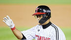 [OSEN=잠실, 민경훈 기자] 11일 오후 서울 잠실구장에서 '2020 신한은행 SOL KBO리그' LG 트윈스와 NC 다이노스의 경기가 열렸다.6회말 1사 1사 주자 1루 LG 채은성이 좌익수 앞 안타를 날린 후 1루에서 손을 흔들고 있다./ rumi@osen.co.kr