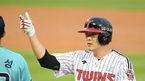 [OSEN=잠실, 민경훈 기자] 11일 오후 서울 잠실구장에서 '2020 신한은행 SOL KBO리그' LG 트윈스와 NC 다이노스의 경기가 열렸다.4회말 무사 주자 1,3루 LG 이형종이 좌익수 앞 역전 1타점 적시타를 날린 후 1루에서 기뻐하고 있다./ rumi@osen