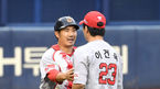 [OSEN=수원 , 곽영래 기자] 14일 오후 수원 KT위즈파크에서 '2020 신한은행 SOL KBO리그' KT 위즈와 한화 이글스의 경기가 열렸다.2회말 1사 KT 박경수가 솔로 홈런을 때린 뒤 장성우와 기뻐하고 있다. /youngrae@osen.co.kr