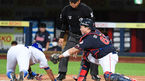 [OSEN=대구,박준형 기자] 17일 오후 대구삼성라이온즈파크에서 KBO리그 삼성 라이온즈와 롯데 자이언츠의 경기가 진행됐다.8회말 2사 2루 삼성 이학주의 1타점 적시타때 2루 주자 강민호가 홈 슬라이딩을 하고 있다/ soul1014@osen.co.kr