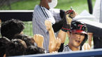[OSEN=잠실, 민경훈 기자] 3일 오후 서울 잠실구장에서 '2020 신한은행 SOL KBO리그' LG 트윈스와 NC 다이노스의 경기가 열렸다.3회초 1사 주자 3루 NC 노진혁의 우익수 앞 1타점 적시타때 홈을 밟은 양의지가 덕아웃에서 동료들의 축하