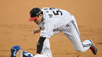 [OSEN=잠실, 민경훈 기자] 3일 오후 서울 잠실구장에서 '2020 신한은행 SOL KBO리그' LG 트윈스와 NC 다이노스의 경기가 열렸다.1회초 2사 주자 2,3루 NC 노진혁이 2루수 왼쪽 내야 1타점 적시타를 날린 후 1루에서 LG 1루수 라모스의 등을