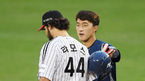 [OSEN=잠실, 민경훈 기자] 3일 오후 서울 잠실구장에서 '2020 신한은행 SOL KBO리그' LG 트윈스와 NC 다이노스의 경기가 열렸다.1회초 2사 주자 2,3루 NC 노진혁이 2루수 왼쪽 내야 1타점 적시타를 날린 후 1루에서 이종욱 코치와 하이파이