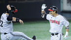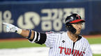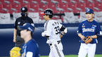 [OSEN=잠실, 민경훈 기자] 3일 오후 서울 잠실구장에서 '2020 신한은행 SOL KBO리그' LG 트윈스와 NC 다이노스의 경기가 열렸다.8회말 2사 주자 1,3루 LG 박용택이 역전 스리런 홈런을 날린 후 홈을 밟으며 기뻐하고 있다./ rumi@osen.co.kr
