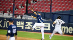 [OSEN=잠실, 지형준 기자] 4일 오후 서울 잠실야구장에서 ‘2020 신한은행 SOL KBO리그’ LG 트윈스와 NC 다이노스의 경기가 열렸다.3회말 무사에서 LG 정주현이 유격수 땅볼을 날리고 1루에서 NC 강진성에 앞서 세이프되고 있다.