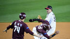 [OSEN=부산,박준형 기자] 10일 오후 부산 사직구장에서 ‘2020 신한은행 SOL KBO리그’ 정규리그 롯데 자이언츠와 삼성 라이온즈과 경기가 진행됐다.5회말 위기를 막은 삼성 이승현이 강민호와 하이파이브를 하며 더그아웃으로