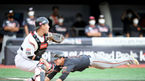 [OSEN=수원, 김성락 기자] 13일 오후 수원 KT위즈파크에서 ‘2020 신한은행 SOL KBO 리그’ KT 위즈와 한화 이글스의 경기가 열렸다.6회초 1사 한화 이해창이 KT 하준호의 투구에 맞고 있다./ksl0919@osne.co.kr