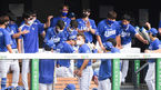[OSEN=잠실,박준형 기자]13일 서울 잠실구장에서 ‘2020 신한은행 SOL KBO리그’ LG 트윈스와 삼성 라이온즈의 경기가 진행됐다.2회초 삼성 선두타자 김동엽이 솔로홈런을 날리고 동료들의 축하를 받고 있다. / soul1014@osen.co.kr