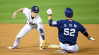 [OSEN=잠실, 조은정 기자] 15일 오후 서울 송파구 잠실야구장에서 ‘2020신한은행SOLKBO리그’ 두산 베어스와 NC 다이노스의 경기가 열렸다.7회초 2사 1루 두산 2루수 이유찬이 도루하는 NC 1루주자 노진혁을 태그아웃 시키고 있