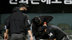 [OSEN=대전, 김성락 기자] 24일 오후 대전 한화이글스파크에서 ‘2020 신한은행 SOL KBO 리그’ 한화 이글스와 롯데 자이언츠의 경기가 열렸다.7회초 1사 유덕형 주심이 롯데 전준우의 파울 타구를 맞은 뒤 고통스러워 하고 있다