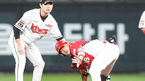 [OSEN=수원,박준형 기자] 25일 오후 수원KT위즈파크에서 2020 신한은행 SOL KBO리그 KT 위즈와 KIA 타이거즈의 경기가 진행됐다.2회초 무사 1루 KIA 김태진의 2루타때 1루 주자 김민식이 3루에 안착한뒤 세리머니를 하고 있다. / soul1014@osen