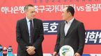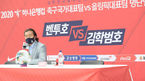 [OSEN=고양,박준형 기자] 28일 경기도 고양시 고양종합운동장 내 트랙에서 ‘2020 남자축구대표팀vs올림픽대표팀 친선경기' 공식 기자회견이 진행됐다.기부금 1억 원이 걸린 이번 경기는 양 팀이 홈 앤드 어웨이 방식으로 경기
