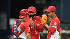 [OSEN=고척, 이대선 기자] 29일 오후 서울 고척스카이돔에서 ‘2020 신한은행 SOL KBO 리그’ 키움 히어로즈와 KIA 타이거즈의 경기가 열렸다.5회말 1사 1루에서 마운드를 방문한 KIA 서재응 코치가 김민식, 임기영과 이야기를 나