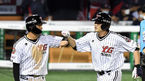 [OSEN=잠실, 최규한 기자] 29일 오후 서울 잠실야구장에서 ‘2020 신한은행 SOL KBO리그’ LG 트윈스와 롯데 자이언츠의 경기가 열렸다.6회말 2사 1, 2루 상황 LG 이형종이 추격의 좌월 스리런포를 날리고 홈을 밟은 뒤 오지환과