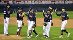 [OSEN=고척, 이대선 기자] 29일 오후 서울 고척스카이돔에서 ‘2020 신한은행 SOL KBO 리그’ 키움 히어로즈와 KIA 타이거즈의 경기가 열렸다.9회초 2사 1루에서 KIA 유민상이 우월 투런 홈런을 치고 홈에서 김태진과 환호하고 있