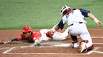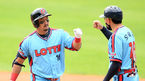 [OSEN=잠실, 이대선 기자] 30일 오후 서울 잠실야구장에서 ‘2020 신한은행 SOL KBO 리그’ LG 트윈스와 롯데 자이언츠의 경기가 열렸다.1회초 2사 3루에서 롯데 이대호의 희생플라이 때 홈을 밟은 3루주자 오윤석이 더그아웃에