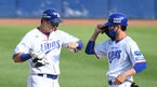 [OSEN=대구, 김성락 기자] 1일 오후 대구삼성라이온즈파크에서 ‘2020 신한은행 SOL KBO 리그’ 삼성 라이온즈와 KT 위즈의 경기가 열렸다.5회말 1사 2루 5회말 1사 삼성 김동엽이 1타점 적시타를 날린 뒤 강명구 코치와 하이파이