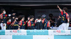 [OSEN=수원,박준형 기자] 3일 오후 경기도 수원시 수원KT위즈파크에서 KBO리그 KT 위즈와 LG 트윈스의 더블헤더 2차전이 진행됐다.3회말 1사 2,3루 KT 배정대의 선취 1타점 적시타때 3루 주자 유한준이 동료들의 축하를 받고 있다. / soul1