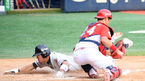 [OSEN=수원,박준형 기자] 3일 오후 경기도 수원시 수원KT위즈파크에서 KBO리그 KT 위즈와 LG 트윈스의 더블헤더 2차전이 진행됐다.1회말 무사 1루 KT 황재균의 헛스윙 삼진때 도루시도한 1루 주자 배정대가 도루실패하고 있다. / soul101