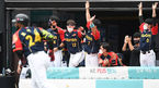 [OSEN=수원,박준형 기자] 3일 오후 경기도 수원시 수원KT위즈파크에서 KBO리그 KT 위즈와 LG 트윈스의 더블헤더 1차전이 진행됐다.3회말 2사 1루 KT 로하스의 선취 2점 홈런때 기뻐하는 KT 더그아웃. / soul1014@osen.co.kr