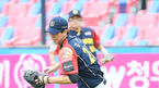 [OSEN=수원,박준형 기자] 3일 오후 경기도 수원시 수원KT위즈파크에서 KBO리그 KT 위즈와 LG 트윈스의 더블헤더 1차전이 진행됐다.5회초 무사 2루 LG 양석환의 내야땅볼때 KT 김민수 선발투수가 실책으로 공을 놓치고 있다. / soul1014@ose