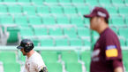 [OSEN=수원,박준형 기자] 3일 오후 경기도 수원시 수원KT위즈파크에서 KBO리그 KT 위즈와 LG 트윈스의 더블헤더 1차전이 진행됐다.4회말 2사 2루 KT 허도환이 내야땅볼 타구를 날리며 아쉬워하고 있다. / soul1014@osen.co.kr