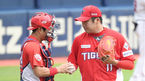 [OSEN=잠실, 조은정 기자] 3일 오후 서울 잠실구장에서 ‘2020 신한은행 SOL KBO리그’ 두산 베어스와 KIA 타이거즈의 경기가 열렸다.1회말 무사 1,2루 KIA 김민식 포수가 마운드에 올라 볼넷으로 만루허용한 KIA 선발투수 김민우