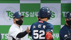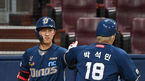 [OSEN=고척, 민경훈 기자] 7일 오후 서울 고척스카이돔에서 '2020 신한은행 SOL KBO리그' 키움 히어로즈와 NC 다이노스의 경기가 열렸다.4회초 1사 NC 노진혁이 우월 솔로홈런을 날린 후 덕아웃에서 이동욱 감독의 축하를 받고 있다./rum