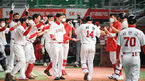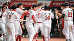 [OSEN=인천,박준형 기자] 7일 오후 인천 SK행복드림구장에서 KBO리그 SK 와이번스와 두산 베어스의 경기가 진행됐다.9회말 2사 SK 최정이 끝내기 홈런을 날린뒤 동료들의 축하를 받고 있다. / soul1014@osen.co.kr