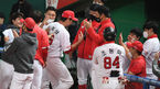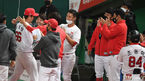 [OSEN=인천, 곽영래 기자] 8일 오후 인천 SK행복드림구장에서 '2020 신한은행 SOL KBO리그' SK 와이번스와 두산 베어스의 경기가 열렸다.8회초 무실점으로 이닝을 마친 SK 윤희상이 동료들의 축하를 받으며 더그아웃으로 들어가고 있다
