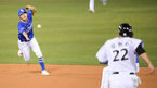 [OSEN=잠실,박준형 기자] 8일 오후 서울 잠실구장에서 KBO리그 LG 트윈스와 삼성 라이온즈의 경기가 진행됐다.6회초 1사 1루 LG 채은성의 병살타때 김호재 유격수가 김지찬 2루수에게 토스하고 있다. / soul1014@osen.co.kr