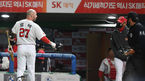 [OSEN=인천, 곽영래 기자] 8일 오후 인천 SK행복드림구장에서 '2020 신한은행 SOL KBO리그' SK 와이번스와 두산 베어스의 경기가 열렸다.3회말 2사 1,3루 SK 로맥이 구심의 삼진 판정에 아쉬워하고 있다. /youngrae@osen.co.kr