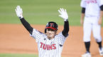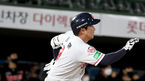 [OSEN=잠실,박준형 기자] 8일 오후 서울 잠실구장에서 KBO리그 LG 트윈스와 삼성 라이온즈의 경기가 진행됐다.9회말 1사 만루 LG 신민재가 끝내기 안타를 날리고 기뻐하고 있다 / soul1014@osen.co.kr