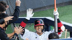 [OSEN=잠실, 민경훈 기자] 9일 오후 서울 잠실구장에서 '2020 신한은행 SOL KBO리그' LG 트윈스와 NC 다이노스의 경기가 열렸다.2회말 1사 주자 1,2루 LG 유강남이 좌월 선취 스리런 홈런을 날린 후 홈을 밟고 있다./ rumi@osen.co.kr