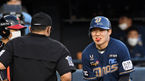 [OSEN=잠실, 민경훈 기자] 9일 오후 서울 잠실구장에서 '2020 신한은행 SOL KBO리그' LG 트윈스와 NC 다이노스의 경기가 열렸다.4회초 NC 선두타자 박민우가 타석에서 LG 선발 켈리의 사구를 당한 후 윤태수 구심과 얘기를 나누고 있다./ r