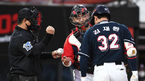 [OSEN=수원, 최규한 기자] 9일 오후 경기도 수원 KT위즈파크에서 ‘2020 신한은행 SOL KBO리그’ KT 위즈와 두산 베어스의 경기가 열렸다.4회초 무사 선두타자로 나선 두산 김재환의 삼진 아웃 때 KT 포수 장성우와 이기중 주심이