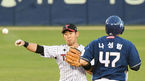 [OSEN=잠실, 민경훈 기자] 9일 오후 서울 잠실구장에서 '2020 신한은행 SOL KBO리그' LG 트윈스와 NC 다이노스의 경기가 열렸다.4회초 무사 주자 1루 NC 양의지의 1루수 앞 땅볼때 2루에서 NC 박민우를 포스아웃 시킨 LG 유격수 오지환이 1