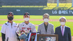 [OSEN=이천, 곽영래 기자] LG 트윈스는 9일 오후 경기도 이천 LG챔피언스파크에서 열린 ‘2020 퓨처스리그’ 고양 히어로즈와의 경기에서 7-5로 승리를 거뒀다.LG 한석현의 퓨처스리그 30호 싸이클링 히트 달성 기념시상식에서 (