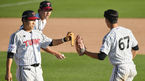 [OSEN=이천, 곽영래 기자] LG 트윈스는 9일 오후 경기도 이천 LG챔피언스파크에서 열린 ‘2020 퓨처스리그’ 고양 히어로즈와의 경기에서 7-5로 승리를 거뒀다.승리를 거둔 LG 퓨처스 선수들이 하이파이브를 하고 있다. /youngrae@