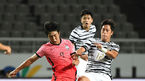 [OSEN=고양, 이대선 기자] 9일 오후 고양종합운동장에서 ‘2020 하나은행컵 축구국가대표팀 vs 올림픽대표팀 친선경기’ 1차전이 열렸다.전반 국가대표팀 김지현과 올림픽대표팀 김재우와 볼 다툼을 하고 있다./sunday@osen.co.kr