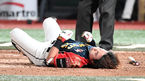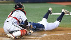 [OSEN=잠실, 최규한 기자] 10일 서울 잠실야구장에서 ‘2020 신한은행 SOL KBO리그’ LG 트윈스와 NC 다이노스의 더블헤더 2차전이 열렸다.5회초 2사 1루 상황 NC 나성범의 우익선상 2루타 때 홈으로 내달린 주자 박민우가 LG 포수