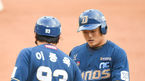 [OSEN=잠실,박준형 기자]11일 오후 서울 잠실구장에서 KBO리그 LG 트윈스와 NC 다이노스의 경기가 진행됐다.4회초 2사 만루 NC 강진성이 역전 2타점 적시타를 날리고 이종욱 코치와 하이파이브를 하고 있다. / soul1014@osen.co.kr