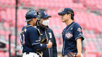 [OSEN=수원, 이대선 기자] 11일 오후 경기도 수원 KT위즈파크에서 ‘2020 신한은행 SOL KBO 리그’ KT 위즈와 두산 베어스의 경기가 열렸다.3회말 1사 1루에서 마운드를 방문한 두산 김원형 코치가 박세혁, 최원준과 이야기를 나누