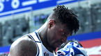 [OSEN=고양, 최규한 기자] 11일 오후 경기도 고양체육관에서 ‘2020~2021 현대모비스 프로농구’ 고양 오리온과 전주 KCC의 경기가 열렸다.1쿼터, KCC 라건아가 부상으로 벤치에 들어오고 있다. / dreamer@osen.co.kr