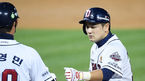 [OSEN=잠실, 민경훈 기자] 13일 오후 서울 잠실구장에서 '2020 신한은행 SOL KBO리그' 두산 베어스와 한화 이글스의 경기가 열렸다.4회말 1사 주자 1,2루 두산 최주환이 중견수 앞 1타점 적시타를 날린 후 1루에서 고영민 코치와 하이파