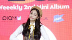 [OSEN=곽영래 기자] 13일 걸그룹 위클리의 두 번째 미니앨범 '위 캔'(We can) 발매 기념 온라인 미디어 쇼케이스가 진행됐다.위클리 지한이 포토타임을 갖고 있다. /youngrae@osen.co.kr<사진제공=플레이엠엔터테인먼트>