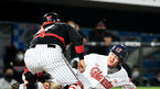 [OSEN=부산, 김성락 기자] 13일 오후 부산 사직야구장에서 ‘2020 신한은행 SOL KBO리그’ 롯데 자이언츠와 LG 트윈스의 경기가 열렸다.3회말 2사 1루 롯데 마차도의 2루타 때 1루 주자 정보근이 홈으로 내달렸으나 LG 포수 유강남