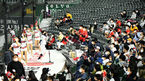 [OSEN=잠실, 민경훈 기자] 13일 오후 서울 잠실구장에서 '2020 신한은행 SOL KBO리그' 두산 베어스와 한화 이글스의 경기가 열렸다.야구팬들이 관중석에서 열띤 응원을 펼치고 있다./ rumi@osen.co.kr
